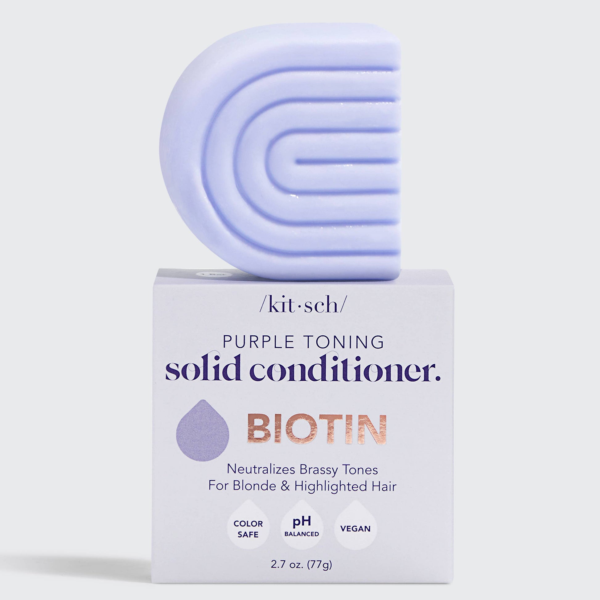The world's first solid purple shampoo bar with Biotin! Safe for blondes, grey & white hair: color-treated, highlighted, & natural. Neutralizes unwanted brassiness and yellow undertones. Enriched with Biotin to boost shine, reduce dullness & strengthen your hair Enjoy smoother, stronger & more vibrant blonde hair after just one use! Free of parabens, phthalates, silicones, sulfates, & artificial fragrance Reduces single-use plastic: saves two bottles of liquid shampoo/conditioner Made in the USA with quality ingredients *Natural fragrance derived from plants. *. Free of parabens, phthalates, silicones, sulfates, & artificial fragrance Fragrance: Orange Blossom & Jasmine Leaping Bunny certified! How to neutralize unwanted brassiness: Post-shampoo, wet bar & "paint" on from lengths to ends for even toning. Finger-comb hair to detangle; let sit for 1-3 minutes for desired toning intensity. Rinse, repeat or use as a leave-in conditioner. Pro tip: Pair with our Beauty Bar Bag.