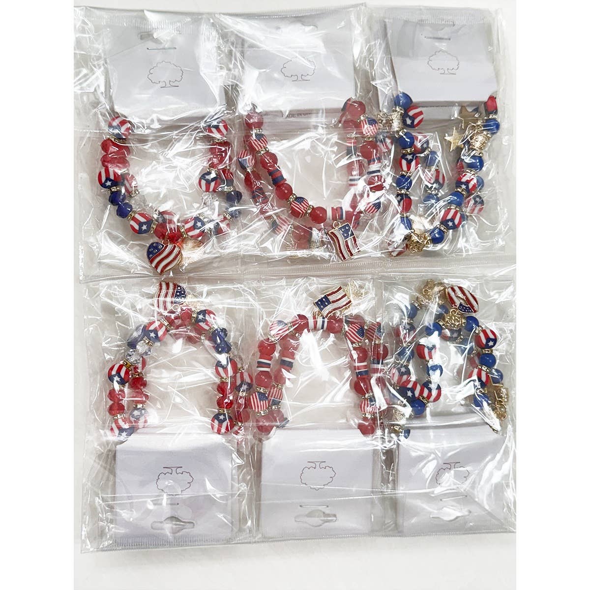 3-Kind Mix Beaded Stretch USA Charm Bracelet