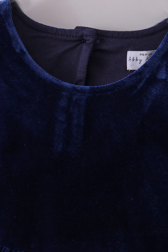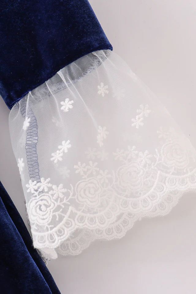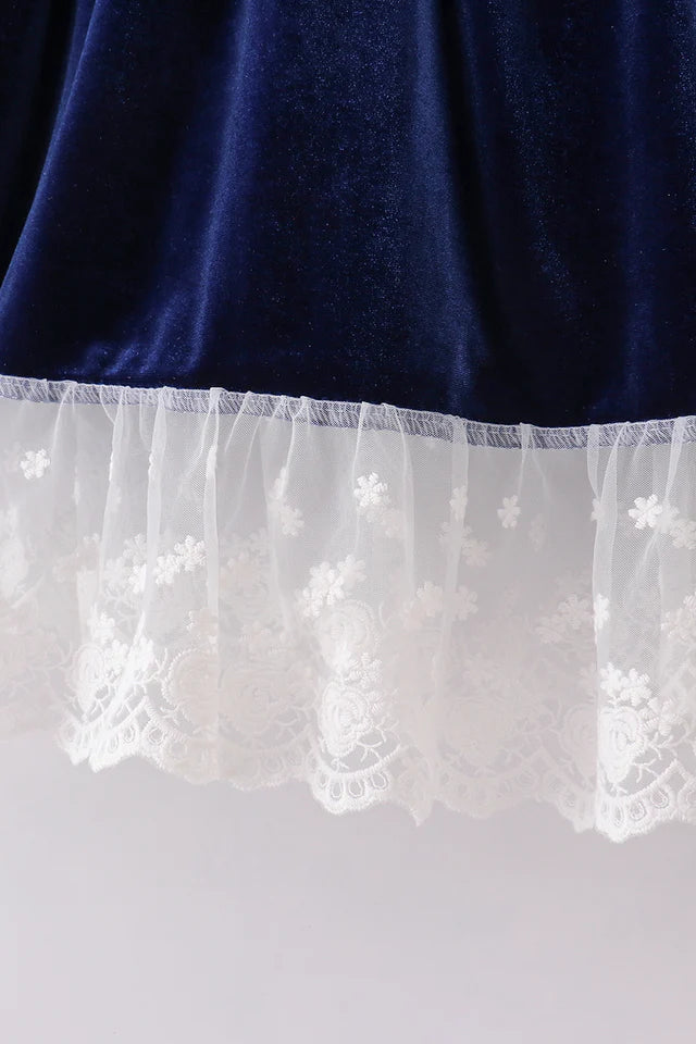 Abby & Evie Girl's Premium Navy Velvet Lace Dress- Toddler - Size 6, 8